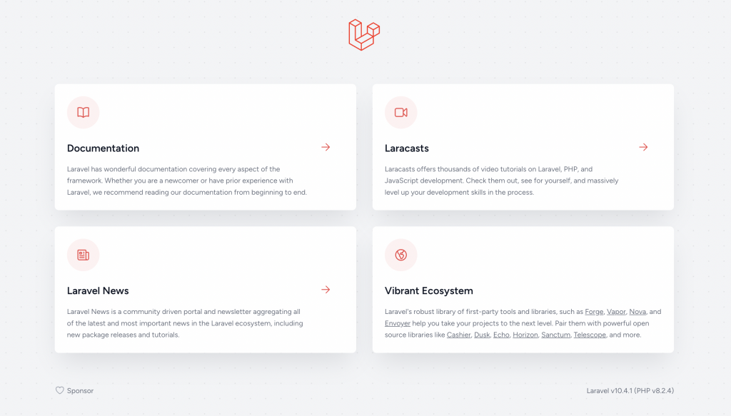 今回はLaravelで実際に新規プロジェクトを開始する前の初期設定から、”Hello World”表示までの流れを紹介します。”Hello World”というのは特別な意味があるわけではなく開発を行う際に初期的に画面に表示されるワードとしての例となります。